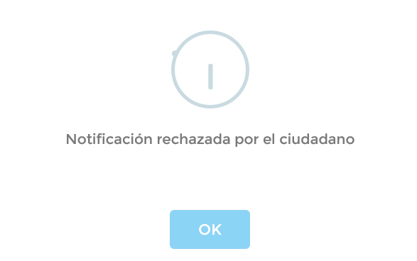 • Notificaciones rechazadas. En caso de que tengamos seleccionada una notificación que hemos rechazado, no podremos visualizar la notificación y nos aparecerá el siguiente mensaje: