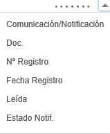 Con este desplegable indicamos el número de Comunicaciones/Notificaciones que queremos que se muestren por página.