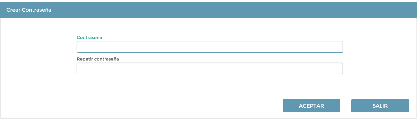 Este formulario corresponde a los datos de acceso como nuevo usuario en la plataforma.